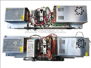 | MONTAJE DE FUENTES IDEAL PARA COLOCAR EN MUEBLE O RACK CONSTA DE FUENTE SWITCHING DE 30 AMPERES MAS UNA SEGUNDA DE 10 AMPERES PROTEGIDA CON AUTOMATICO,FUSIBLERA BORNES MONTADOS EN RIEL DIN , CON TERMINALES SAE EN CHASIS Y PLUG ABAJO